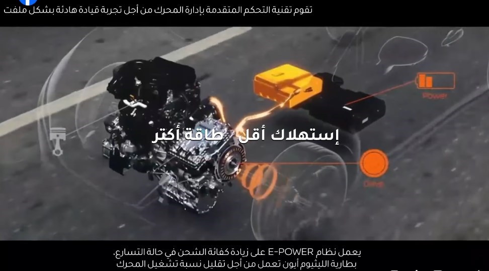 وفي أحدث إعلاناتها التشويقية، أوضحت نيسان ميزات تقنية "e-power" الجديدة والتي تجمع بين مزايا السيارات الكهربائية والهجينة معًا، وتقدم خيارا اقتصاديا من حيث الاستخدام المثالي للطاقة والاستهلاك الأقل للوقود، إلى جانب زيادة كفاءة الشحن في حالة التسارع، والبطارية الليثيوم أيون التي تعمل على تقليل نسبة تشغيل المحرك، والتباطؤ لشحن البطارية الذي يؤدي لزيادة كفاءة الوقود بفضل نظام إعادة الشحن من خلال قوة الفرامل.