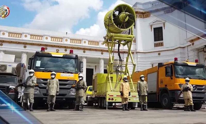 إستكمالاً لخطة القيادة العامة للقوات المسلحة للوقاية من فيروس كورونا المستجد صدرت الأوامر للإدارات التخصصية المعنية بتنفيذ عمليات التطهير والتعقيم الوقائى لمجمع التحرير وعدد من الميادين والشوارع الرئيسية والمنشآت والمرافق الحيوية المحيطة بميدان التحرير التى يتردد عليها أعداد كبيرة من المواطنين بشكل مستمر .