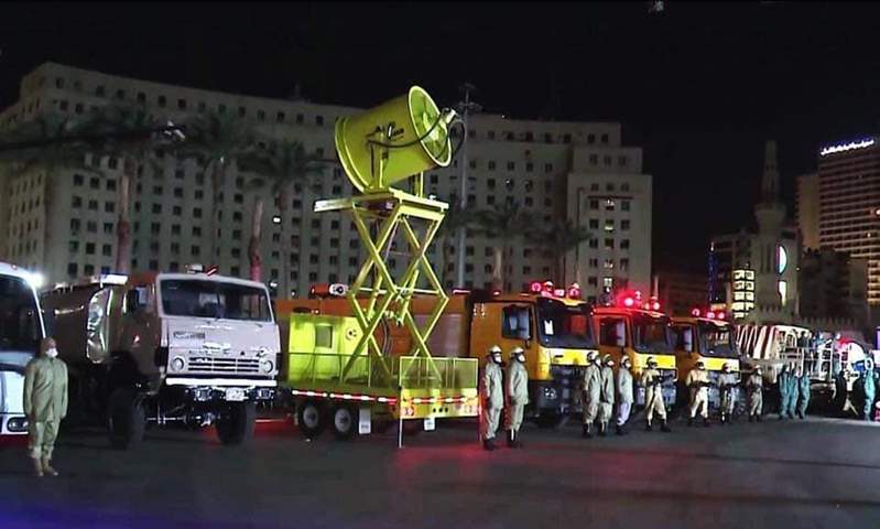 وقد حرصت القوات المسلحة على إستخدام أحدث وسائل ومعدات التعقيم والتطهير ذات المعايير العالمية لضمان تنفيذ كافة الإجراءات من خلال الإسلوب العلمى الراقى والذى يضمن التنفيذ بأعلى جودة وأكبر مساحة ممكنة ، فضلاً عن تنفيذ أعمال التعقيم والتطهير فى أوقات متأخرة من الليل حتى الصباح الباكر لضمان عدم تعطل حركة المرور ، وتنفيذ أكبر قدر ممكن من أعمال التطهير الوقائى بتلك الأماكن أثناء خلوها من المواطنين المترددين فى ذلك الوقت .