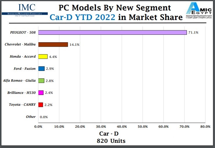 كشف التقرير الصادر عن مجلس معلومات سوق السيارات "أميك"، تصدر السيارة "بيجو 508" قائمة السيارات السيدان متوسطة الحجم Car-D خلال الفترة من يناير وحتى أكتوبر العام الجاري، بعدما سجلت 583 سيارة مستحوذة بذلك على 71.1% من إجمالي مبيعات تلك الفئة والتي بلغت 820 سيارة.