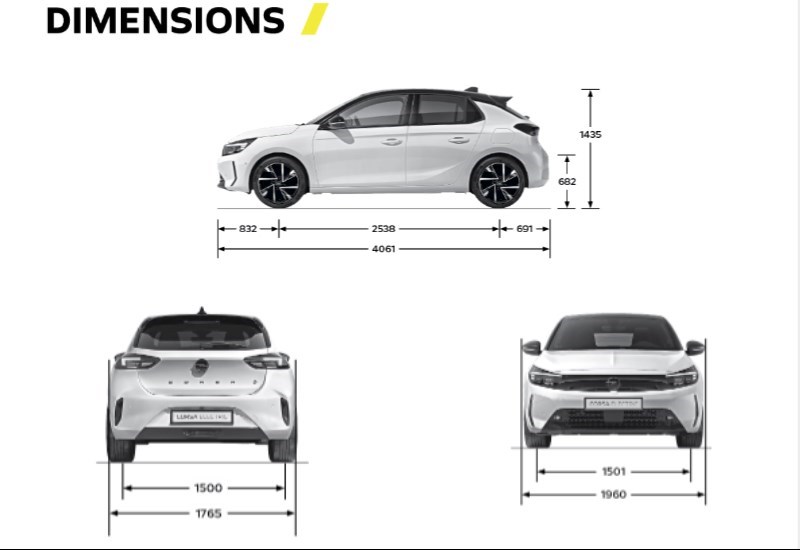 | الأبعاد الخارجية لـ "أوبل كورسا" | |