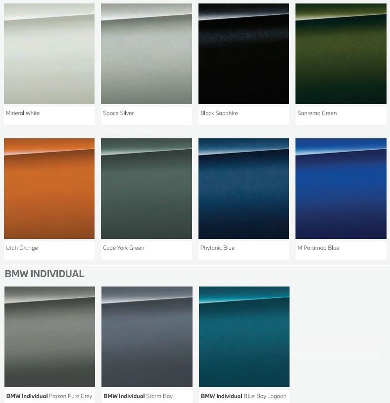 مصابيح أمامية LED تفاعلية مع خاصية إنارة المنحنيات، نظام الإضاءة الذكي بخاصية عدم الإبهار، إضاءة نهارية، تحكم أوتوماتيك في درجة وتوزيع الإضاءة العالية الأمامية للسيارة، كشاف مدمج في مرايا الأبواب يضيء بعلامة BMW، مرايا الأبواب بخاصية تعتيم أوتوماتيك جهة السائق، طي مرايا الأبواب كهربائيًا، مصابيح خلفية LED، مصابيح فرامل بإضاءة ديناميكية، نوافذ خلفية وزجاج خلفي معتم، فتحة سقف بانوراما، فتح وغلق باب الشنطة أوتوماتيك، جنوط رياضية مقاس 18 بوصة من الطراز 865، عدة لإصلاح ثقوب الإطارات.