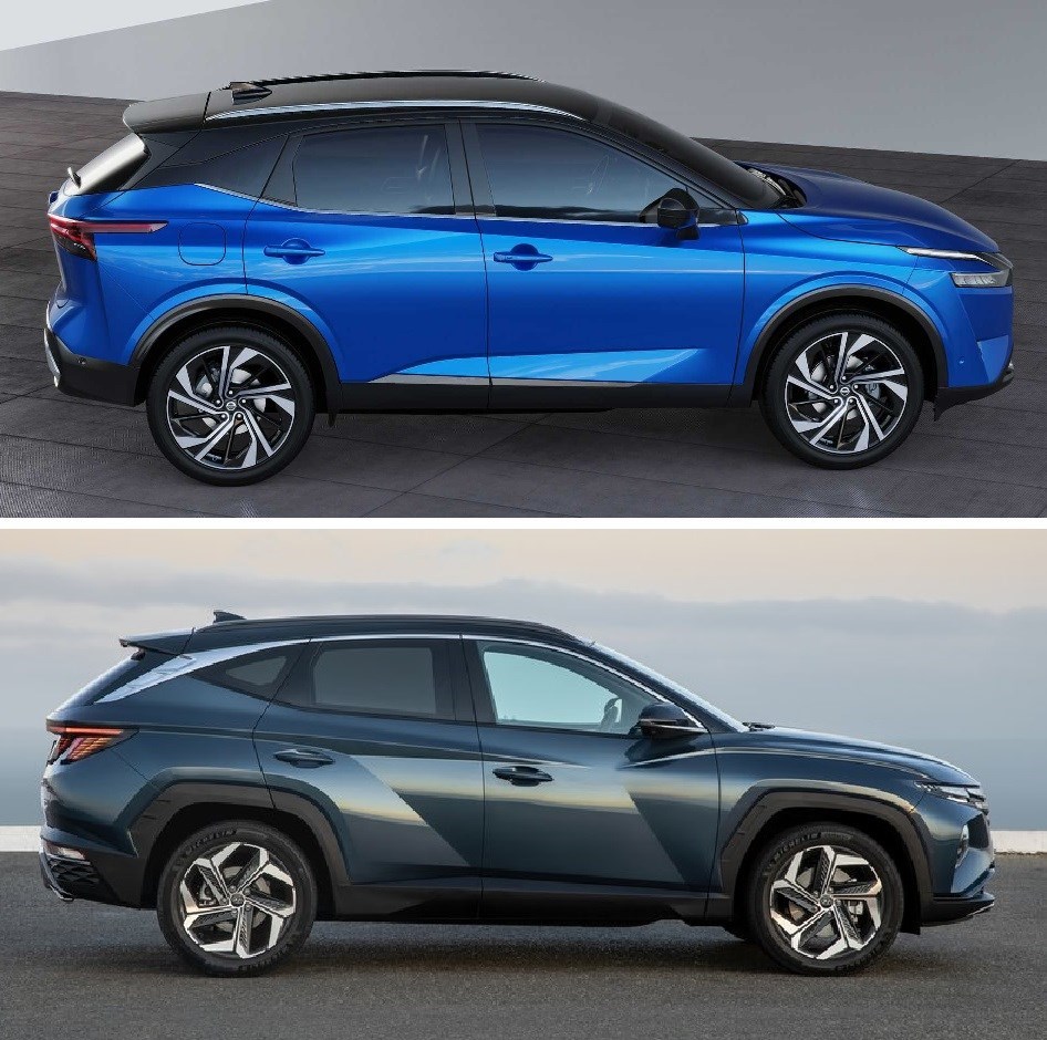 أما بخصوص الأبعاد الخارجية لكل منهما، فقد جاءت توسان أكبر حجمًا بشكل واضح مقارنة بـقشقاي، رغم تصنيفهما تحت فئة الكروس أوفر SUV المدمجة.. وذلك على النحو التالي: