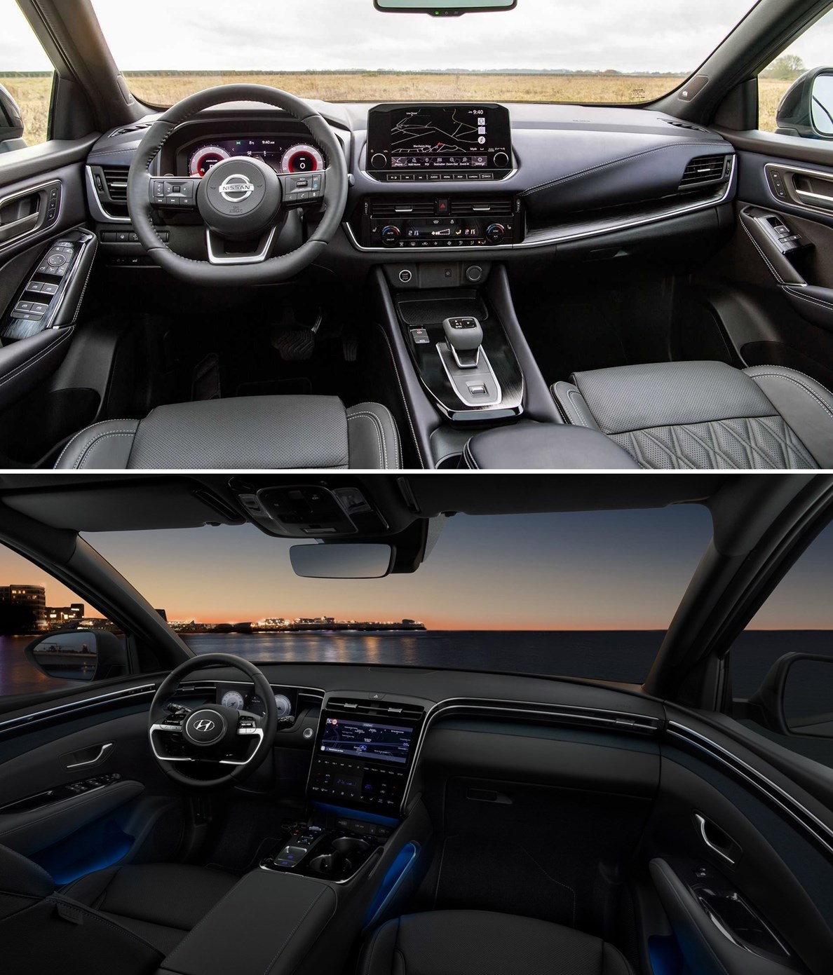 وتستمر نفس الاختلافات في المقصورة الداخلية لتتنافس كل منهما على تقديم أفضل وسائل الراحة والرفاهية مع تجربة قيادة مريحة، ومع ذلك تتطابق بعض التجهيزات الداخلية للسيارتين مثل: التكييف ثنائي التوزيع، المفتاح الذكي وزر تشغيل المحرك، ولكن تتفوق قشقاي في حجم الشاشات الداخلية سواء شاشة الترفيه أو شاشة العدادات.