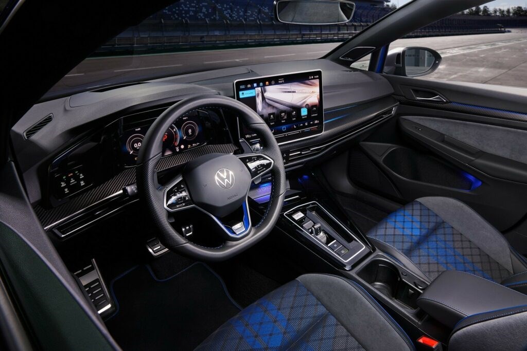 تم تحديث الواجهة بمصابيح أمامية انسيابية بإضاءة LED Plus وفي المنتصف يظهر شعار الشركة مضيئاً، وفي الأسفل مصد أمامي جديد بخطوط أكثر شراسة وبعناصر تعزز الديناميكية الهوائية.. بالنسبة للعجلات فتتوفر بمقاس 18 أو 19 بوصة.. ومن الخلف تم تعزيز "جولف آر" بمصابيح جديدة ودفيوزر بلون أسود لامع ونظام عادم مكون من أربع فتحات.