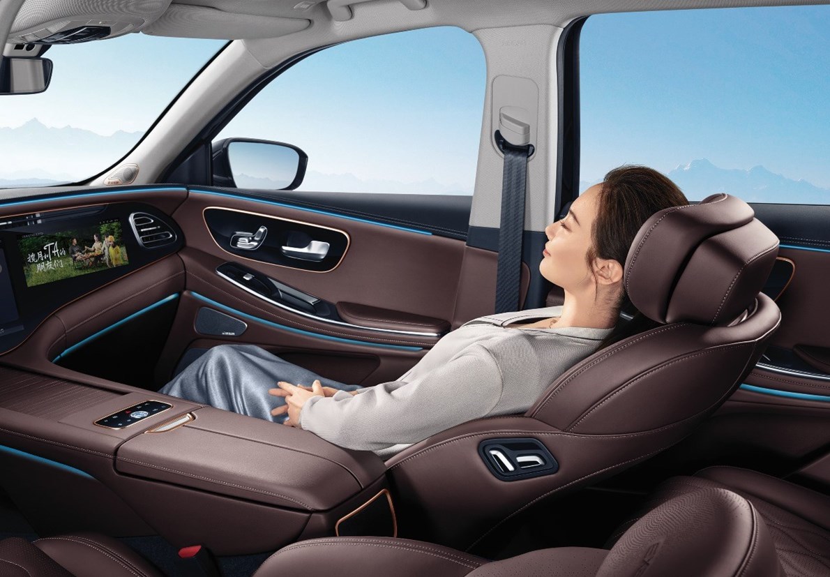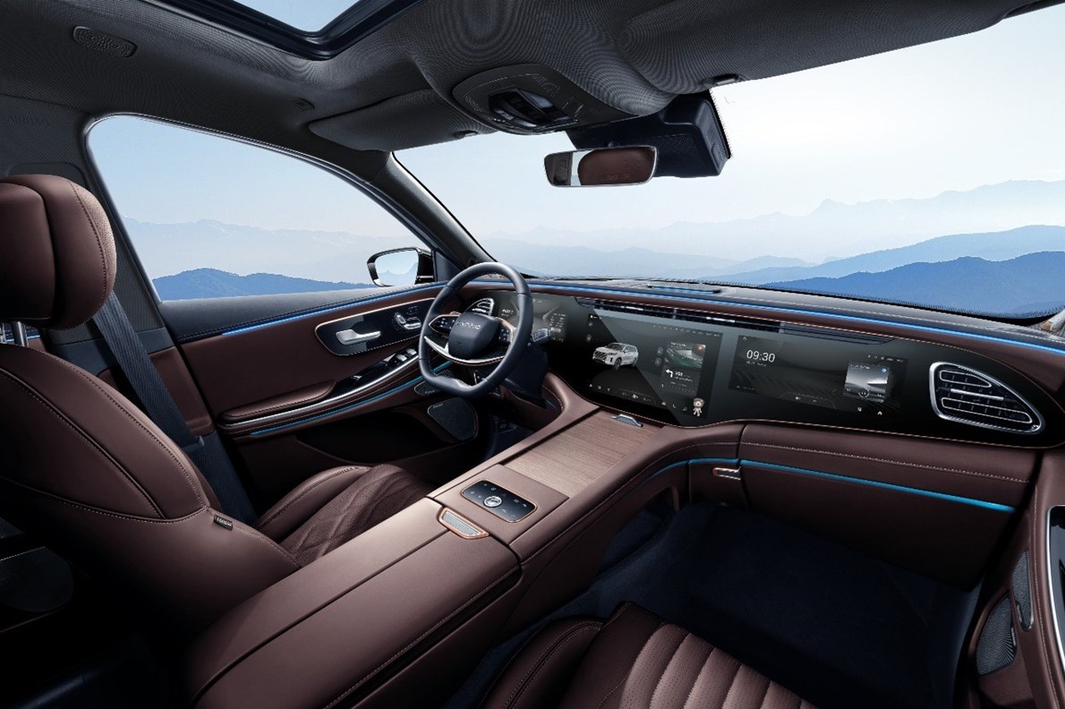 نظام صوت iFLYTEK مكون من 23 سماعة، سماعات بمسند الرأس الخاص بمقعد السائق، 4 منافذ USB عادية ومنفذين USB-C،، منصتين شحن لاسلكي سريع للهواتف الذكية، تكييف أوتوماتيك ثلاثي التوزيع، فتحات تكييف للصف الثالث، إضاءة محيطة ذات لونين..