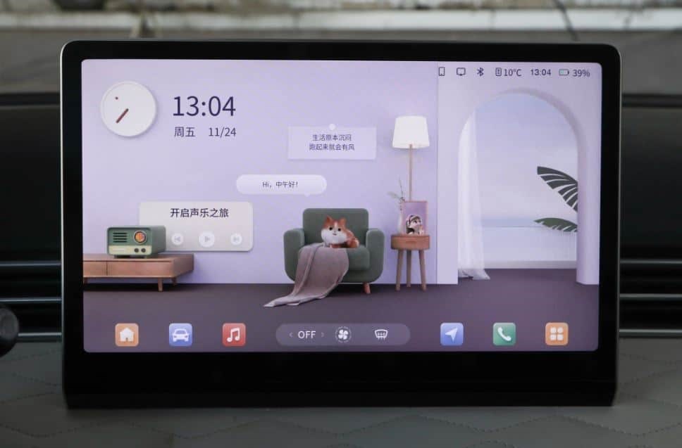 تم تجهيز لوحة القيادة بشاشة عدادات LCD مقاس 5 بوصة، وشاشة للترفيه وعرض البيانات مقاس 12.8 بوصة تطفو أعلى لوحة القيادة وتدعم التحكم في الوظائف عن بُعد عبر الهاتف الذكي، وتحديثات OTA، والتحكم الصوتي الذكي، بالإضافة إلى عجلة قيادة متعددة الوظائف.