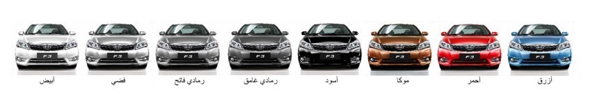 تقدم "بي واي دي F3" في 8 ألوان للطلاء الخارجي هم (أسود، أبيض، أزرق، درجتين من الرمادي، موكا، فضي، أحمر).. وبالنسبة للتجهيزات القياسية فهي كالتالي: