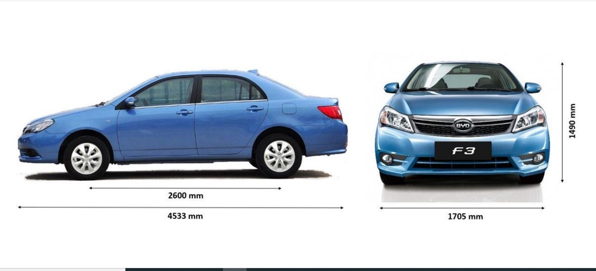 | الأبعاد الخارجية والسعة لـ "بي واي دي F3" | |