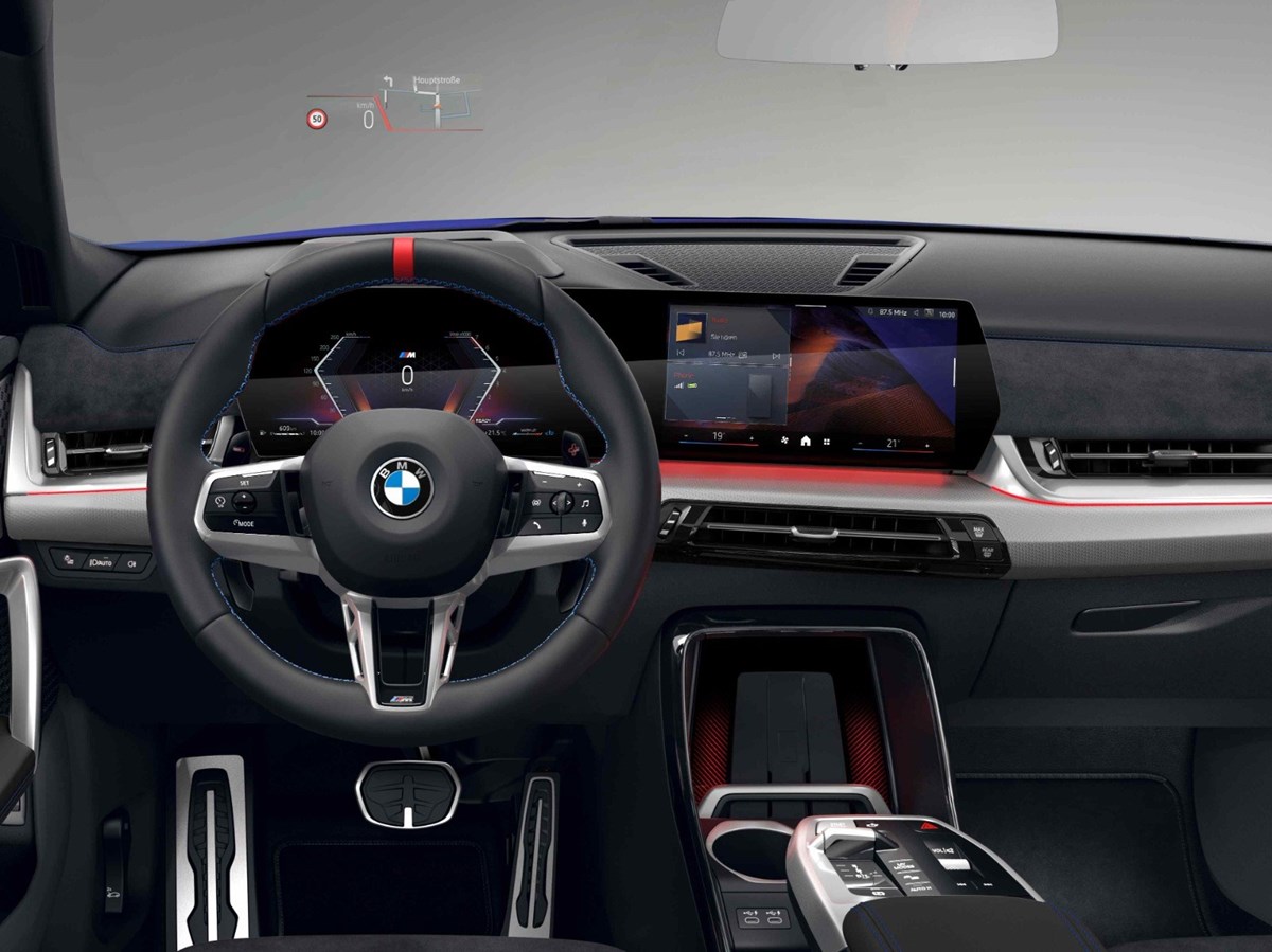 ورغم الخطوط الخارجية التي بدا تصميمها أكثر رياضية عن أي وقت مضى، فإن المقصورة الداخلية الجديدة كليًّا باتت تستعين بمكوِّنات ناعمة الملمس ذات جودة أعلى وتقنيات حصرية متطوِّرة. تستعين مقصورة الطرازان X2 وiX2 بشاشة BMW Curved Display التي تتضمّن لوحة عدَّادات قياس 10.25 بوصة وأخرى للتحكُّم بالوظائف المختلفة قياس 10.7 بوصة. وتعمل هذه الشاشات بنظام تشغيل OS 9.0 الأحدث. وهناك أيضًا النظام الصوتي فئة Harman Kardon المكوَّن مِن 12 سمَّاعة ومضخِّم صوت رقمي، إلى جانب الاستعانة بمسند ذراع floating armrest. ومِن ضمن أبرز تجهيزات الراحة والترف المدعَّمة قياسيًّا، يُمكن ذكر مكيّف الهواء الأوتوماتيكي الذي يُمكن فصل درجة حرارته في منطقتين مختلفتين، والمقاعد الأمامية الرياضية التي يُمكن ضبطها كهربائيًّا مع خاصية تدليك الظهر لراحة أكبر على المسافات الطويلة، وأيضًا الكسوة الجلدية المثقوبة للمقاعد فئة "فيجانزا"، والمقوَد الجلدي الرياضي فئة M، والشاحن اللاسلكي، وكاميرا الرؤية الخلفية، وفتح الباب الخلفي أوتوماتيكيًّا، ونظام الإضاءة الداخلية المميَّزة، وغيرها من التجهيزات الأخرى.