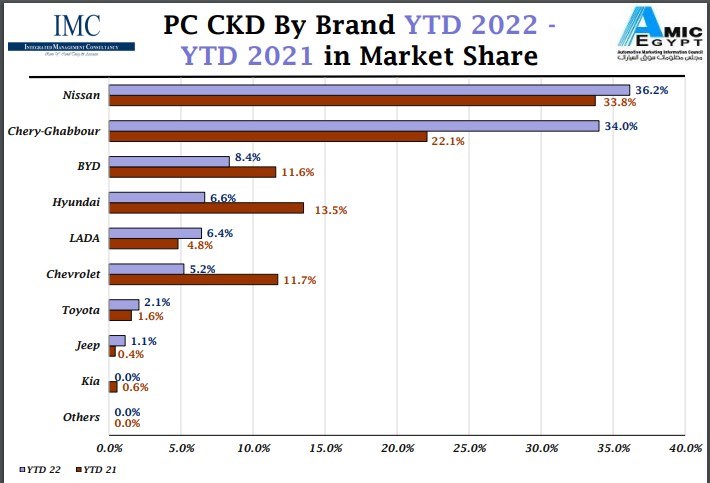 ووفقا للتقرير الصادر عن مجلس معلومات سوق السيارات "أميك-AMIC"، تأتي العلامة الصينية "شيري" في المركز الثاني بعدما تمكنت من تسجيل نحو 11,094 سيارة، واقتناص 34.0% من الحصة السوقية، لتحقق ارتفاعا ملحوظا مقابل السبعة شهور الأولى من العام الماضي، والتي حققت خلالها 7,068 سيارة بحصة سوقية 22.1%، وكانت "شيري أريزو 5" السيارة الأكثر مبيعا للشركة بواقع 4015 سيارة.
