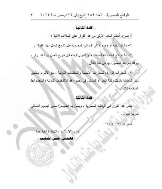 1. ما تم شحنه أو وصوله إلى الموانئ المصرية قبل تاريخ العمل بهذا القرار.