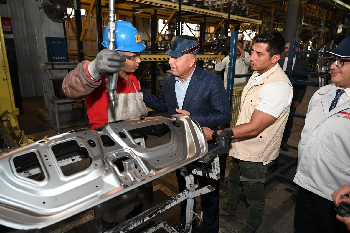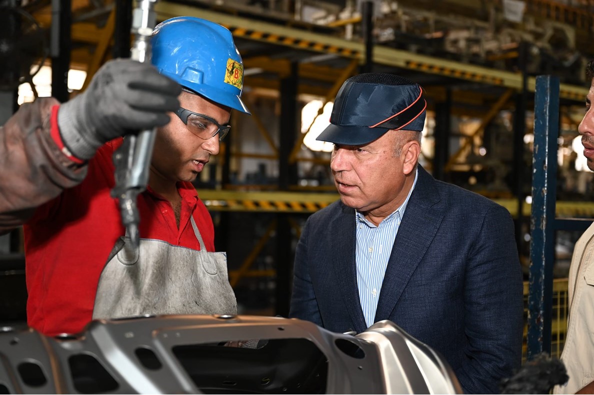 وتفقد الوزير خطوط إنتاج هيكل السيارة والطلاء والتجميع بالمصنع المقام على مساحة 104.7 ألف متر وبإجمالي رأس مال 150 مليون دولار وحجم إنتاج يبلغ 252 ألف سيارة سنوياً.