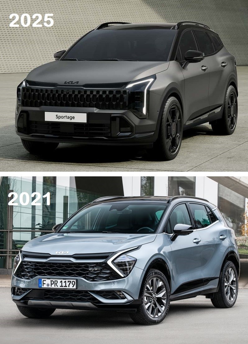 ينطلق الجيل الخامس لـ"كيا سبورتاج" منذ عام 2021، ولعل أول ما يلفت الانتباه في نسخة الفيس ليفت الجديدة هو تصميم الواجهة، بداية من شكل المصابيح الأمامية والإضاءة النهارية التي لم تعد بذلك التصميم الشبيه بأداة البوميرانج، وإنما اتخذت شكل متعرج ينساب رأسيًا على جانبي الواجهة، وفي المنتصف نالت الشبكة الأمامية نصيبها من التعديلات بعد الاستغناء عن النمط الداخلي المستوحى من خلية النحل لتأتي بتصميمات جديدة حسب الفئة، وكذلك الحال في المصد الأمامي بتصميم فتحات التهوية على جانبيه والشبكة السفلية في منتصفه، والذي يختلف أيضًا باختلاف الفئة.