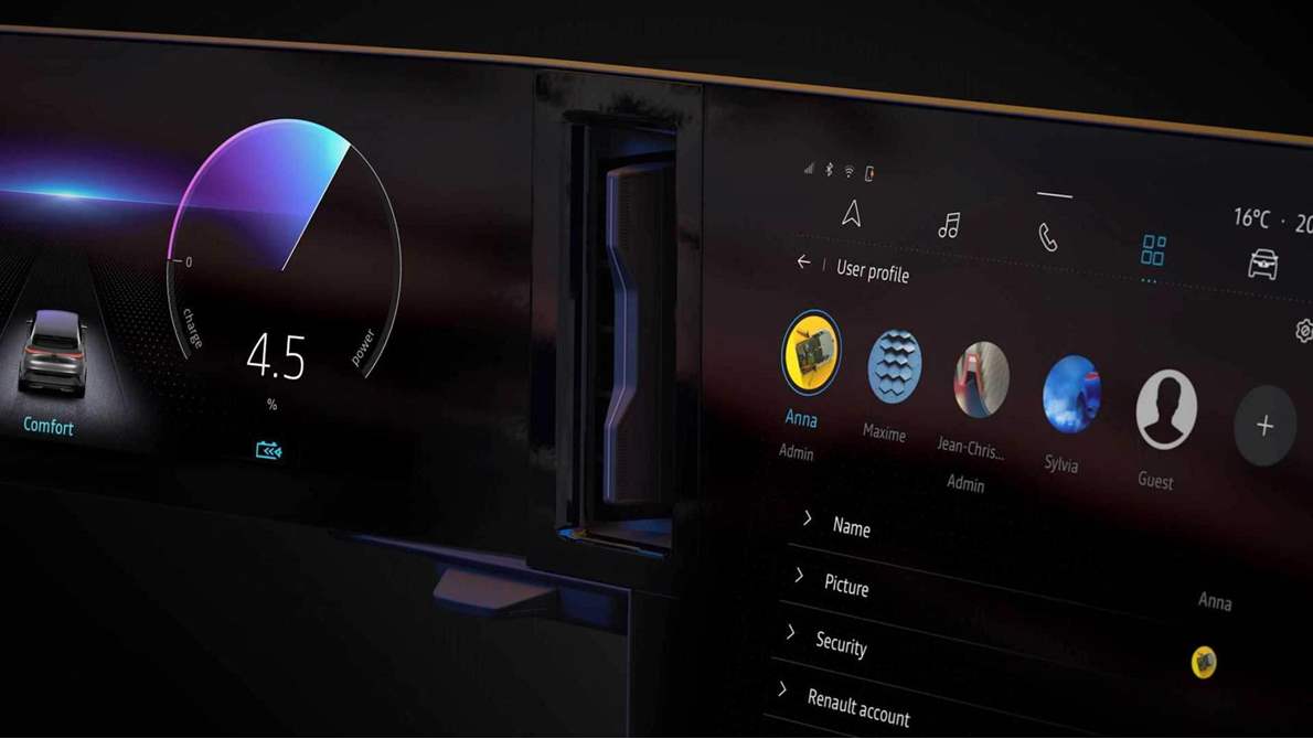 كذلك قامت رينو بتركيب صف من الأزرار المادية أسفل الشاشة الكبيرة، ما يوفر وصولاً سريعًا إلى العديد من الوظائف. أسفل هذه المجموعة من عناصر التحكم مباشرةً، ستكون لوحة شحن لاسلكية، بينما سيوفر المستوى السفلي منطقة تخزين وإمكانية الوصول إلى حاملات الأكواب. ستتميز السيارة بإضاءة LED محيطة.