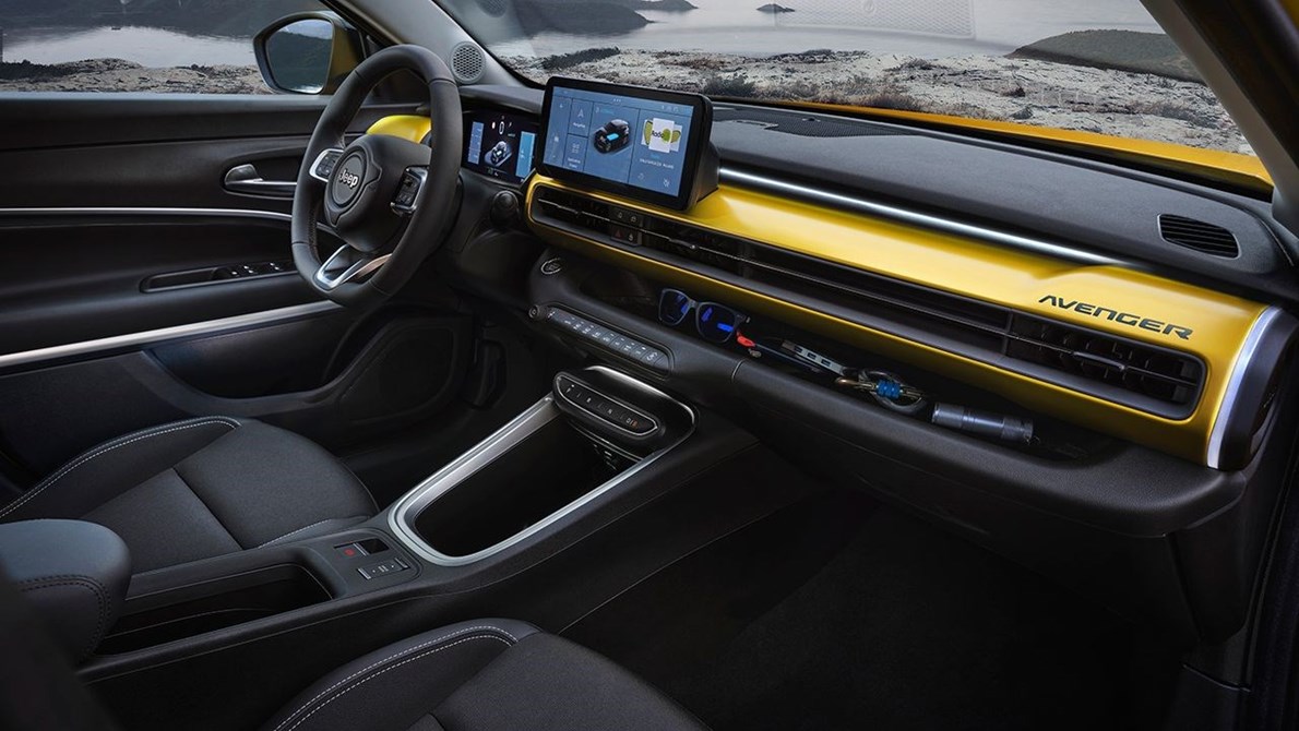 وتتمتع المقصورة الداخلية لـ "جيب أفينجر Jeep Avenger" بلمسات رقمية وتكنولوجية تتلائم مع التطور والكهربة.. فبالجلوس في مقعد السائق، يمكن ملاحظة لوحة العدادات الرقمية بقياس 7 أو 10.25 بوصة حسب الإصدار والفئة.