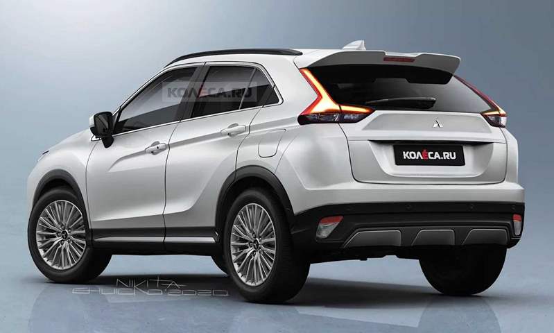 أما الجزء الخلفي من Eclipse Cross فمن الممكن أن نقول أنه خضع لتغيير جذري في التصميم، حيث يتميز الطراز الحالي بزجاج الباب الخلفي المنقسم بواسطة جناح إضاءة بعرض السيارة، وهو ما كان بدوره يسبب عائقًا للسائق عند الرؤية الخلفية، إلا أنه اختفى في التصميم الجديد في الصور التجسسية واستبدلت بأضواء مقلوبة على شكل حرف Y تتبع الجزء الخارجي من زجاج باب صندوق الأمتعة، ويغير من تصميم الباب بالكامل، على الرغم من أن بقية الواجهة الخلفية تظل في الغالب دون تغيير.