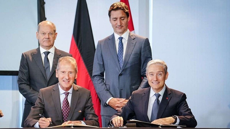 تركز مجموعة فولكس فاجن على التعاون بين شركة البطاريات المؤسسة حديثًا PowerCo المملوكة لها، وبين قطاع التعدين الكندي، حيث يُعد توريد المواد الخام المهمة مثل: الليثيوم والنيكل والكوبالت محورًا رئيسيًا لهذا التعاون.