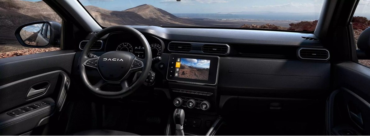 وفي داخل المقصورة، تأتي السيارة بشاشة ترفيه وعرض البيانات مقاس 8 بوصة تعمل باللمس بنظام Media Nav، كاميرا متعددة الرؤية، ومكيف هواء أوتوماتيك، إلى جانب بطاقة تحل محل المفتاح التقليدي، ولا تتوفرشاشة عدادات رقمية حيث أن هذه الميزة غير متوفرة في طراز داستر.