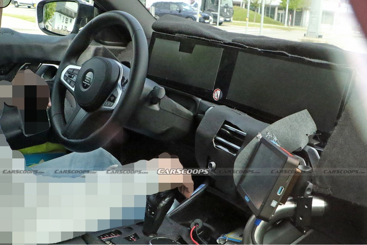 قامت بي ام دبليو بتغطية الكثير من أجزاء المقصورة، لكن بعضها ترك مكشوفاً مما يكشف عن تغيير كبير، حيث ستحصل السيارة على الشاشتين المتصلتين التان رأيناهما في الكثير من طرازات الصانع البافاري، وهما شاشة العدادات وشاشة النظام الترفيهي الأحدث iDrive 8 من بي ام دبليو.