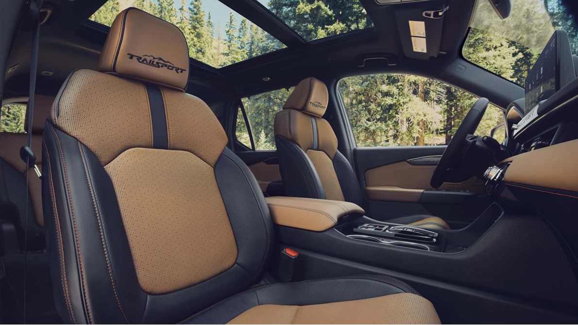 وتتميز الفئة TrailSport بفرش داخلي يضم لمسات من اللون البرتقالي وسقف بانورامي ومنافذ طاقة بقوة 110 فولت بالكونسول الوسطي، فيما تنفرد الفئة الأعلى TrailSport Elite بفرش من الجلد المثقب، خاصية التهوية للمقاعد الأمامية، أدوات تحكم في التكييف بالمقاعد الخلفية، ستائر للأبواب الخلفية، ونظام صوت من Bose مكون من 12 سماعة.