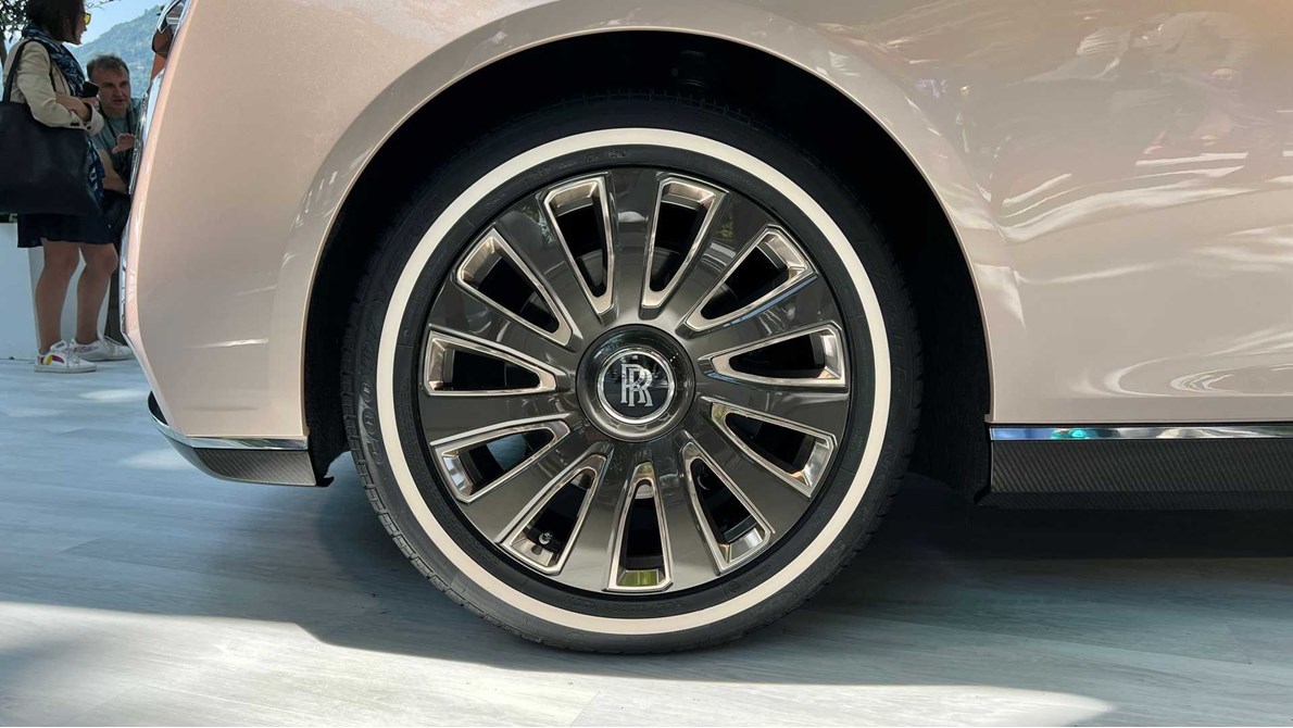 تتمتع السيارة بإطارات بيضاء وجنوط مطلية بالذهب الورديتم حفرها بالليزر، وهي عملية تقول رولز رويس إنها لم يتم إجراؤها من قبل على سيارة منتجة.