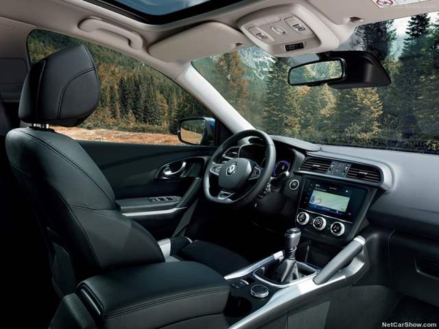في الداخل يحتوي الجزء الأوسط من لوحة القيادة على شاشة لمس للوسائط المتعددة مقاس 7 بوصات، وهي تعرض نظام R-LINK 2 مع عناصر التحكم على كلا الجانبين، وأسفلها لوحة التحكم في تكييف الهواء الأوتوماتيكي بتصميم مريح مع عرض إعدادات درجة الحرارة والتهوية.. وتتميز مقابض الأبواب والكونسول الوسطي بلمسات من الكروم، وقد تم تزويد لوحات الأبواب الداخلية بعناصر تحكم جديدة للنوافذ الكهربائية ومرايا الأبواب مع إضاءة خلفية لتسهيل الاستخدام في أثناء الليل.. وتتميز المقاعد المعاد تصميمها برغوة مزدوجة الكثافة لتعزيز الراحة ومنع التعب في الرحلات الطويلة مع تعزيزات جتنبية توفر دعمًا أفضل.