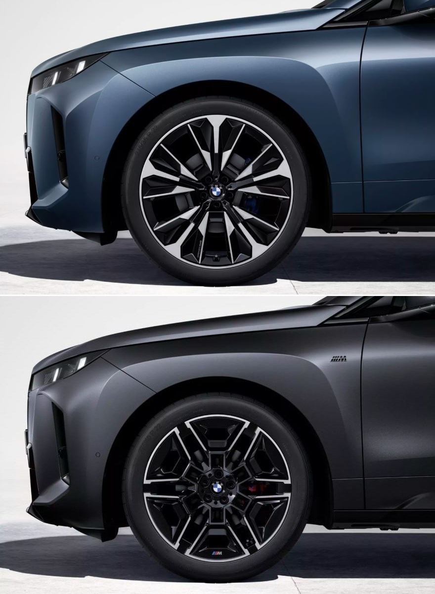 وتزداد الاختلافات لدى الفئة M70 بمصابيح أمامية وخلفية Shadowline، مع إتاحة الباقتين M Sport و M Sport Professional بشكل اختياري، كما تنفرد هذه الفئة بتصميم الشبكة وأغطية المرايا السوداء وكذلك الجنوط الحصرية، حيث يتاح اختيار عجلات مقاس 23 بوصة للمرة الأولى.. وبالنسبة لعجلات iX عامةً فتتوفر بمقاس 20 بوصة بشكل قياسي، ولكن عند اختيار باقات M الرياضية تتوفر مقاسات 21 و 22 بوصة اختيارياً، وجميع الجنوط تتمتع بتطعيمات بلاستيك لكفاءة الديناميكية الهوائية.