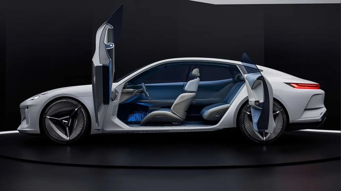 وكشفت الشركة عن سيارة سيدان فاخرة ذات أبعاد ضخمة أقرب في حجمها لمرسيدس EQS ، وتتميز بتصميم مستقبلي.. وتهيمن على الواجهة الأمامية مصابيح أمامية رفيعة ممزقة تذكرنا بنظام Polestar Precept وشبكة عريضة ومضاءة.