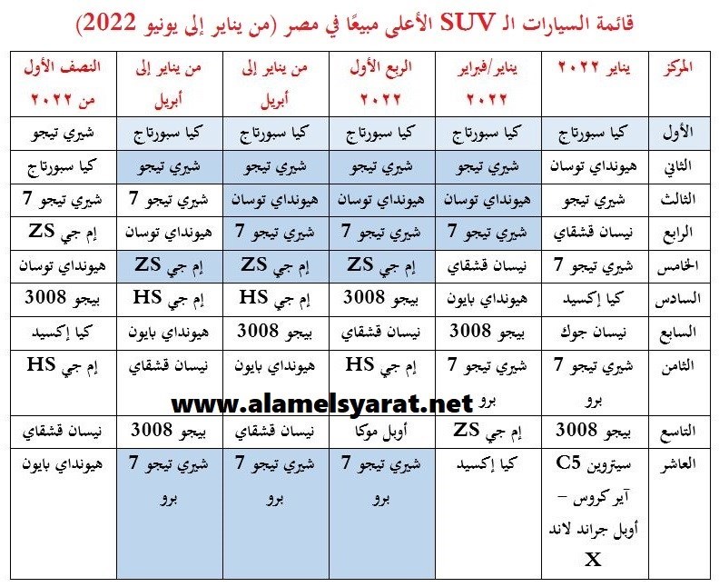 وتجدر الإشارة إلى أن عودة " كيا إكسيد" إلى هذه القائمة كان على حساب خروج سيارة أخرى وهي "شيري تيجو7 برو"، التي أصبحت في الترتيب الحادي عشر أي خارج هذه القائمة.