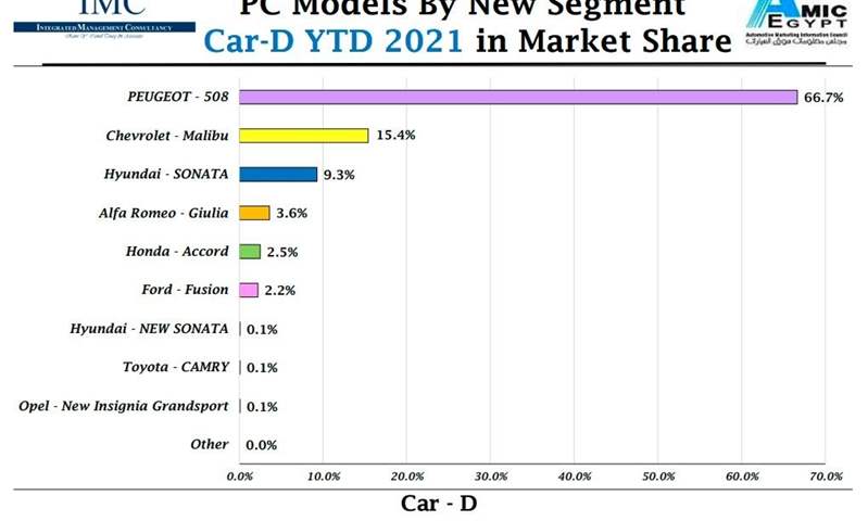 واصلت "بيجو 508" صدارة مبيعات فئة (السيدان متوسطة الحجم) في السوق المصري بنهاية شهر مايو الماضي، حيث ارتفعت حصتها السوقية من 65.7% في أبريل إلى 66.7% في مايو، بمبيعات بلغت 718 سيارة خلال الشهور الخمسة الأولى من 2021، وذلك وفقًا لتقرير مجلس معلومات سوق السيارات أو (أميك AMIC) الصادر عن شهر مايو.