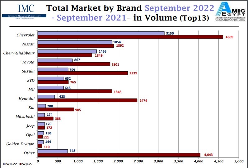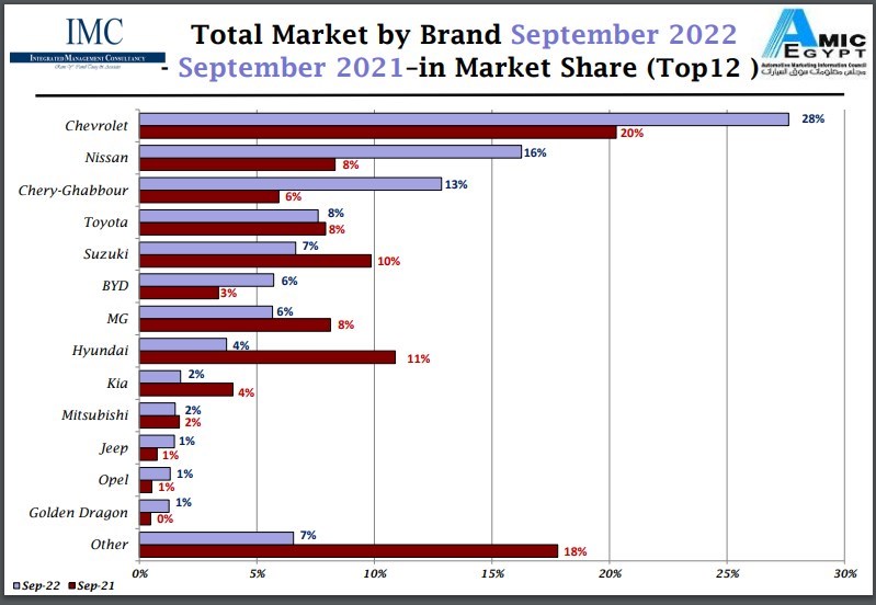 حافظت العلامة "شيفرولية" على تصدرها مبيعات السيارات فى مصر خلال شهر سبتمبر من العام الحالي، بعدما استحوذت على حصة سوقية 28% مسجلة نحو 3,150 سيارة مقابل 4,609 سيارة في نفس الشهر العام الماضي.
