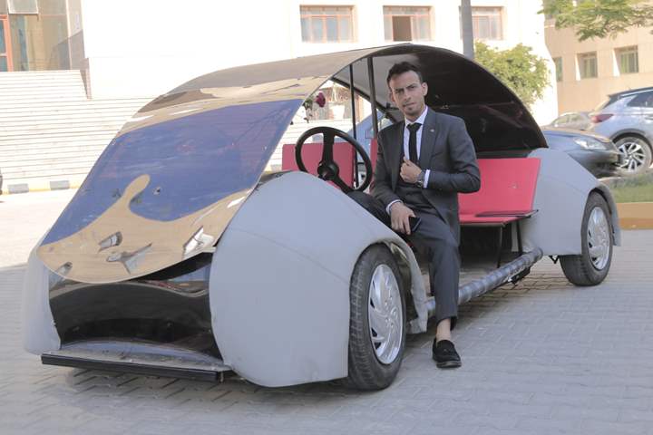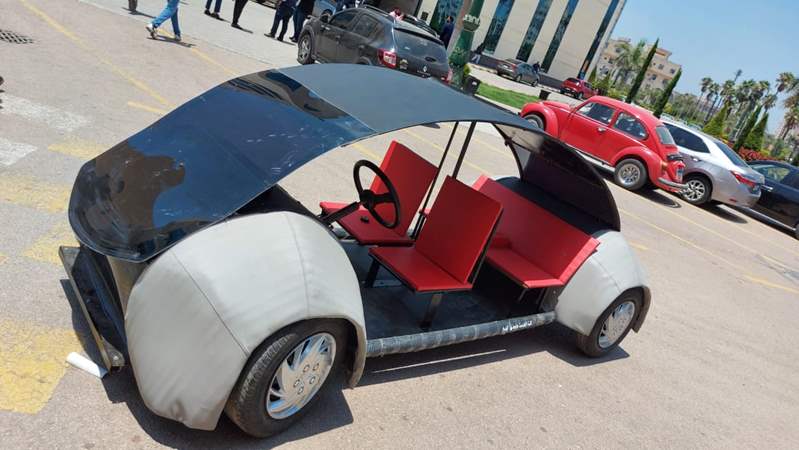 وأوضح أن وزن السيارة بلغ نحو 150 كيلو جرامًا، وتتحمل 3 أفراد، لافتًا السيارة تتلائم مع السير في التجمعات السكنية الصغيرة، وتم تصميمها من الخارج بالاعتماد على خامات الجلد، لتغطية "الصاج" مما يُضفي مظهر جمالي على السيارة.
