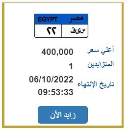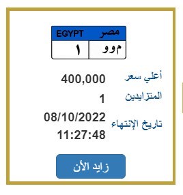 وينتهي تاريخ بعض اللوحات اليوم 5 أكتوبر 2022 وآخرى بتواريخ 6 و 7 و8 من الشهر الحالي.. وتنتهي المزايدات الإلكترونية على بعض اللوحات في حدود الساعة الثانية والنصف مساء اليوم، وأخرى ممتدة حتى الواحدة مساء يوم السبت القادم.