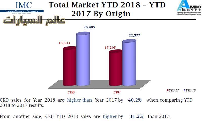 وفى نفس الوقت، زادت مبيعات السيارات المستوردة خلال الفترة من يناير وحتى أبريل الماضي بنسبة 31.2% بالمقارنة مع مبيعات نفس الفترة من العام الماضي حيث زادت من 17205 إلى 22577 مركبة.