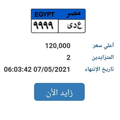 أعلى سعر للمزايدة: 120 ألف جنيه مصري.