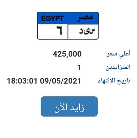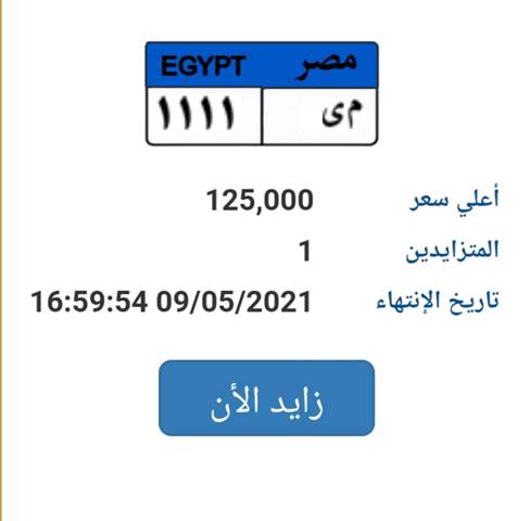 أعلى سعر للمزايدة: 125 ألف جنيه مصري.