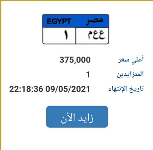 أعلى سعر للمزايدة: 375 ألف جنيه مصري.