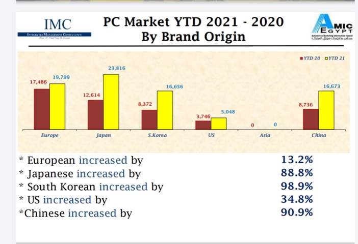 كما شهدت السيارات الصيني في مصر زيادة في المبيعات بنسبة بلغت نحو 90,9%، حيث بلغت مبيعاتها خلال أول خمسة أشهر 16,673 وحدة مقابل 8,736 وحدة، وكذلك كشف "أميك" عن نمو مبيعات السيارات الياباني في مصر بنسبة وصلت إلى 88,8%، حيث حققت بيع وصل إلى 23,816 وحدة، مقابل 12,614 وحدة.