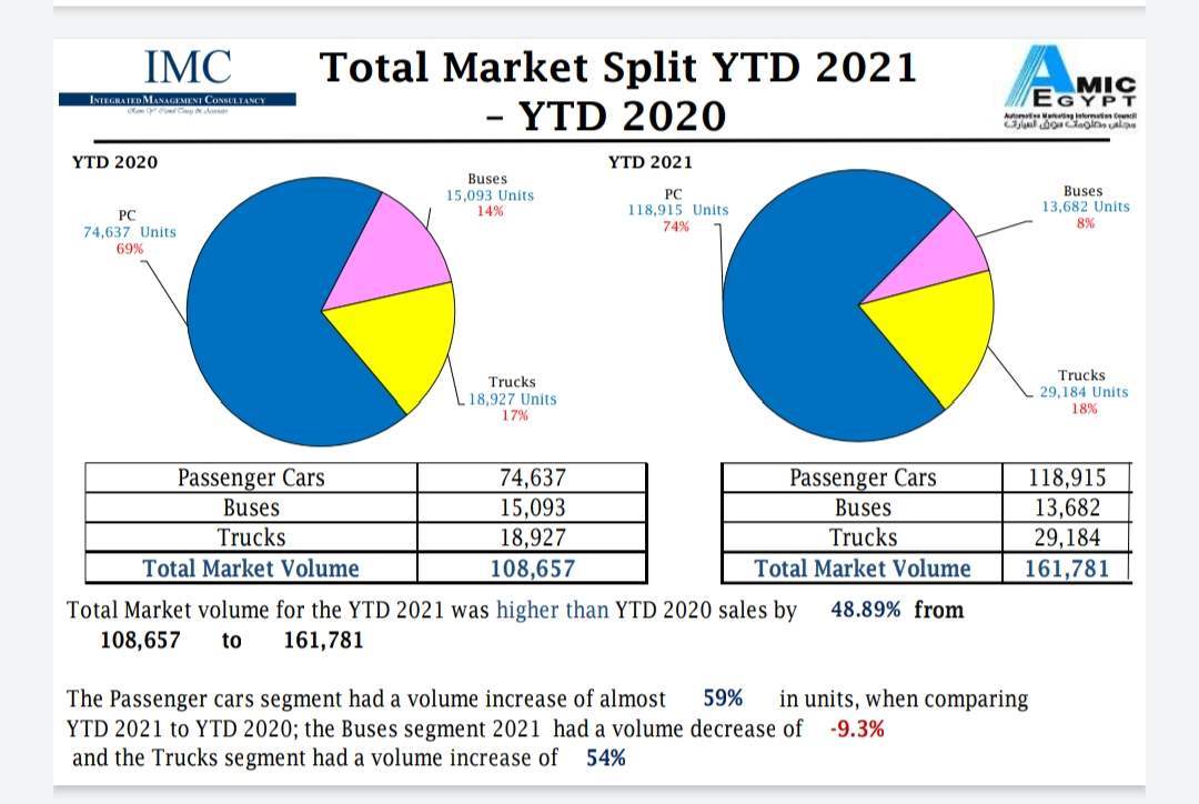 الماضي، عن نمو مبيعات السيارات في مصر خلال أول 7 أشهر من العام الجاري 2021؛