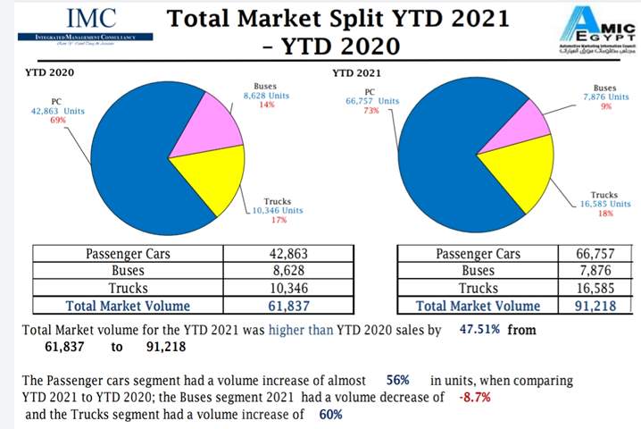 كما زادت مبيعات الشاحنات بنسبة 60%، حيث سجلت مبيعاتها 16,218 وحدة، مقابل 61.837 وحدة خلال العام الماضي 2020.