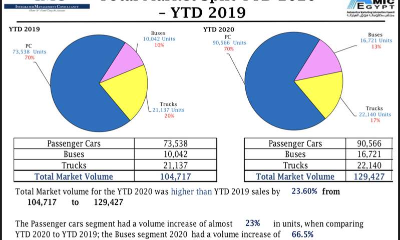 فيما ارتفعت مبيعات سيارات الركوب خلال أغسطس 2020 بنسبة 48% ببيع 15,929 وحدة، مقابل بيع 10,728 وحدة خلال أغسطس 2019، وارتفعت مبيعات الاتوبيسات أيضاً خلال أغسطس الماضي بنسبة 11.1% ببيع 1,628 وحدة مقابل بيع 1,465 وحدة خلال الشهر ذاته من العام الماضي.