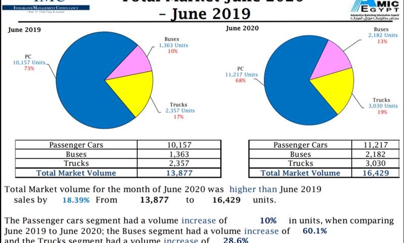 بينما بلغت مبيعات الشاحنات 19% ما يساوي 3,030 وحدة، بزيادة عن شهر يونيو للعام الماضي 2019 بنسبة 28,6%، حيث سجل حجم المبيعات 2,357 وحدة.