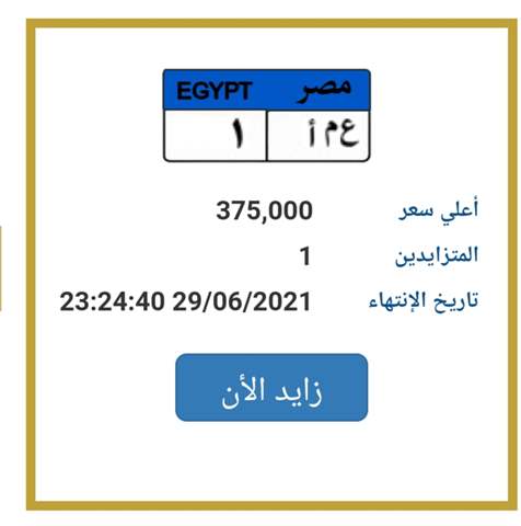 أعلى سعر للتزايد: 75 ألف جنيه مصري.