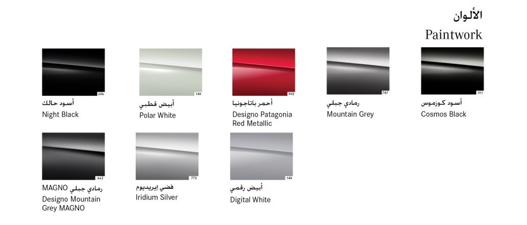 إضاءة أمامية LED، إضاءة خلفية LED، مرايا أبواب قابلة للضبط والطي كهربائيا مع خاصية تعتيم، باقة ليلية، ، زجاج خلفي معتم للخصوصية، فتح وغلق الشنطة أوتوماتيك، عجلات رياضية مقاس 19 بوصة مصنوعة من معدن خفيف، إطارات Run-Flat