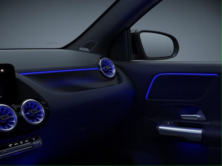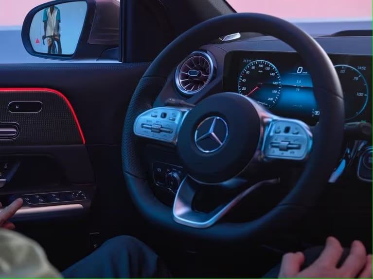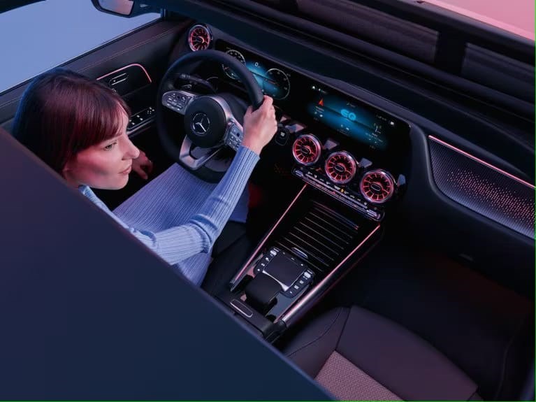 دخول السيارة بدون مفتاح، عجلة قيادة رياضية مكسوة الجلد متعددة الوظائف، بدالات بعجلة القيادة، تكييف هواء أوتوماتيك، شاشة للترفيه وعرض البيانات مقاس 10.25 بوصة، شاشة عدادات رقمية، نظام الوسائط المتعددة MBUX، تحكم باللمس، وظائف إضافية لنظام MBUX، مرآة داخلية بخاصية تعتيم، توصيل الهاتف بالسيارة، بلوتوث للتحدث الحر، باقة الجلوس المريح، نظام صوت محيطي Burmester، منفذ USB، إضاءة داخلية خافتة، شحن لاسلكي للهاتف..