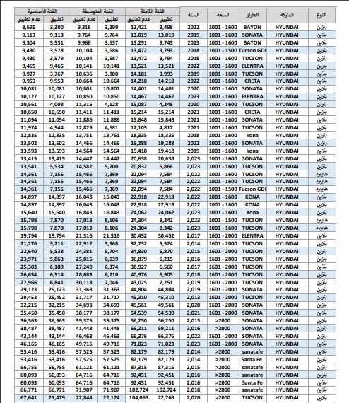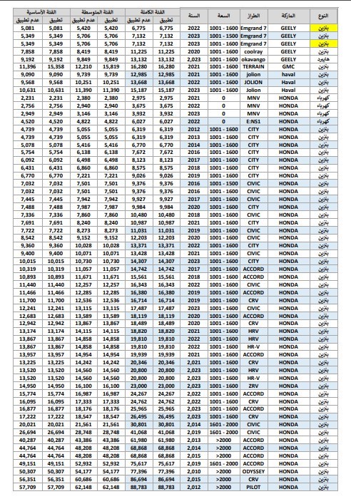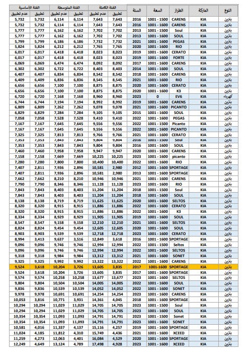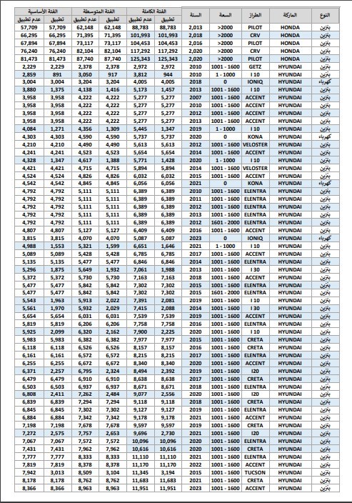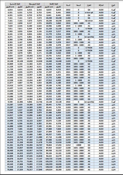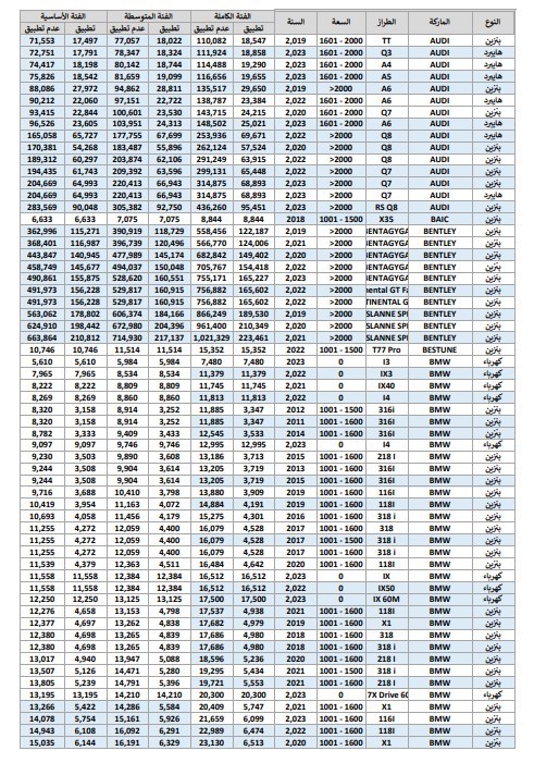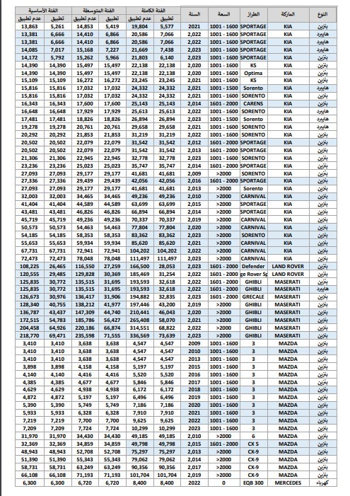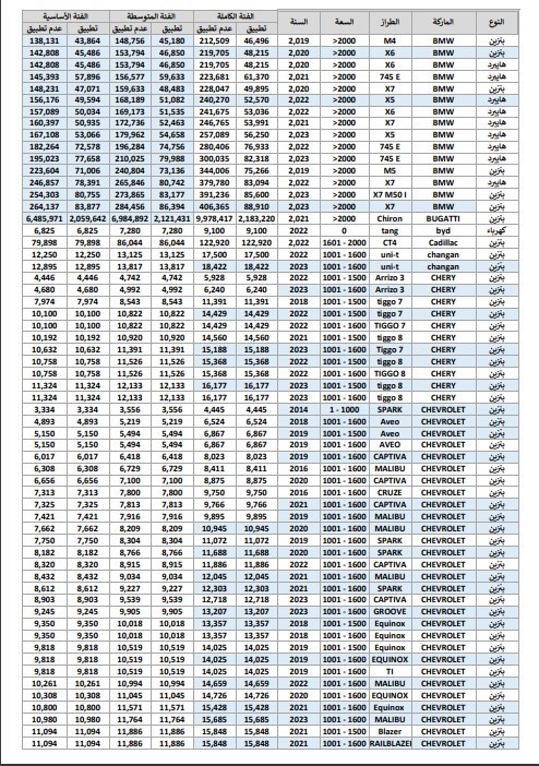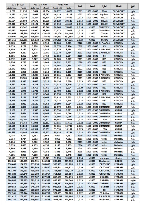 وفيما يلي نستعرض مع حضراتكم جداول أسعار الودائع والجمارك الخاصة ببعض السيارات: