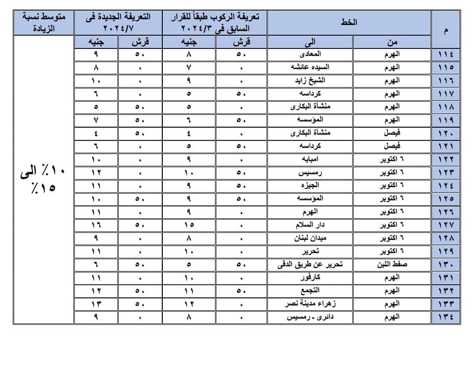 بعد زيادة أسعار البنزين والسولار.. تعرف على الأجرة الجديدة للمواصلات بمحافظة الجيزة