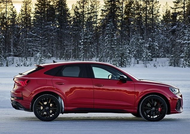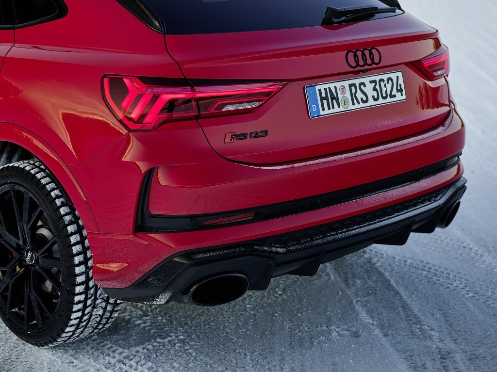 تنتمي السيارة لتصنيف الـ SUV كوبيه بسقف مائل، وهي إحدى إصدارات Q3 التي تم الكشف عن الجيل الثاني منها في منتصف عام 2018.. وبالنظر إلى الواجهة، يلاحظ الشبكة الأمامية السوداء Singleframe بفتحاتها ثلاثية الأبعاد على شكل "خلية النحل"، وكذلك المصابيح الأمامية الداكنة فئة Matrix LED.. وتتضمَّن اللمسات الخارجية أيضًا مصدات رياضية فئة RS، فتحة سقف زجاجية بانوراما، عجلاتٍ داكنةً مقاس ٢١ بوصة، عاكسَ هواء رياضيًّا هجوميًّا، وجناحًا خلفيًّا فئة RS مُدمجًا بالسقف، ونظام العادم الرياضي فئة RS.