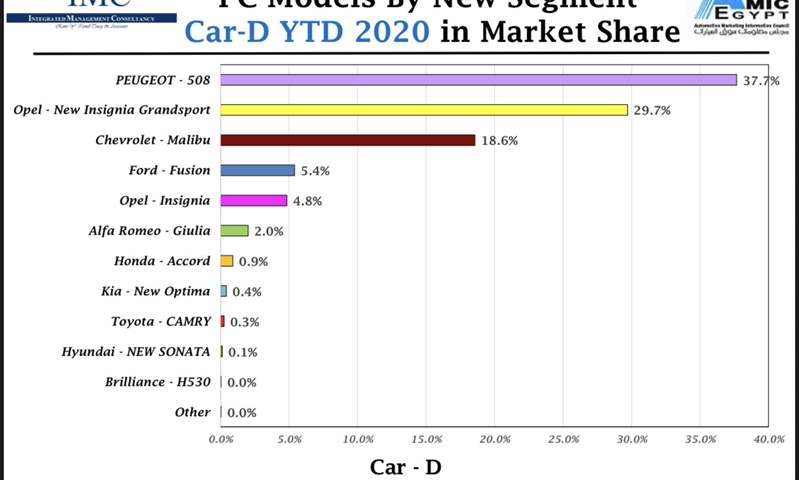 تصدرت بيجو 508 قائمة مبيعات السيارات السيدان العائلية متوسطة الحجم في السوق المصري خلال الثمانية أشهر الأولى من عام 2020 الجاري، بنسبة بلغت 37.7% من إجمالي مبيعات هذه الفئة في السوق المصري.